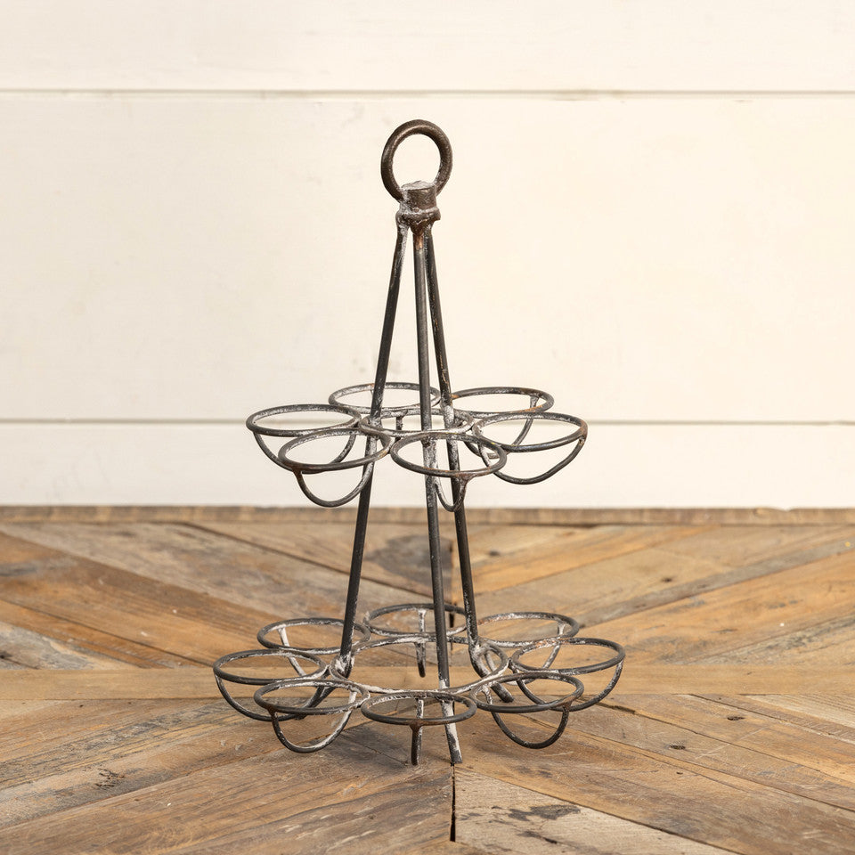 This charming metal egg holder combines practical storage with rustic appeal. Whether you're gathering fresh eggs from your backyard coop or arranging colorful Easter eggs for display, this sturdy piece keeps your eggs organized and protected. Its durable construction and timeless design make it a versatile addition to any kitchen, farmhouse, or seasonal décor. Perfect for both everyday use and special occasions.