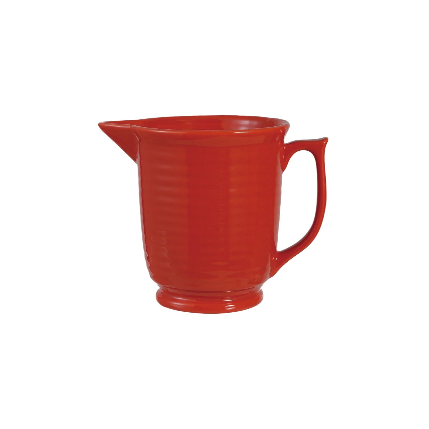 Bring warmth and character to your kitchen with this 1-1/4 quart stoneware pitcher in rich orange. Its vintage-inspired ribbed design adds texture and visual interest, while the vibrant hue makes a striking statement on open shelving. Equally at home holding fresh flowers as it is serving beverages, this versatile piece transitions seamlessly from functional serveware to decorative accent. A timeless addition to any home.