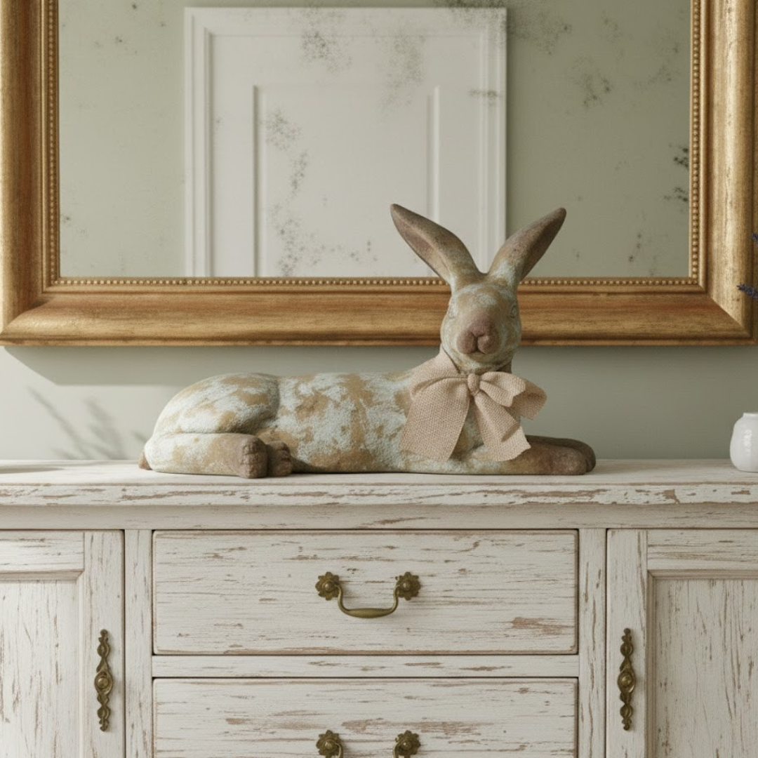 Introduce a touch of charm and whimsy to your home with our Tan Resting Rabbit! This adorable rabbit figurine adds a playful yet elegant touch to any spring decor. Made to look like an old stone piece, it brings a rustic and timeless feel to your space. A must-have for any animal lover!