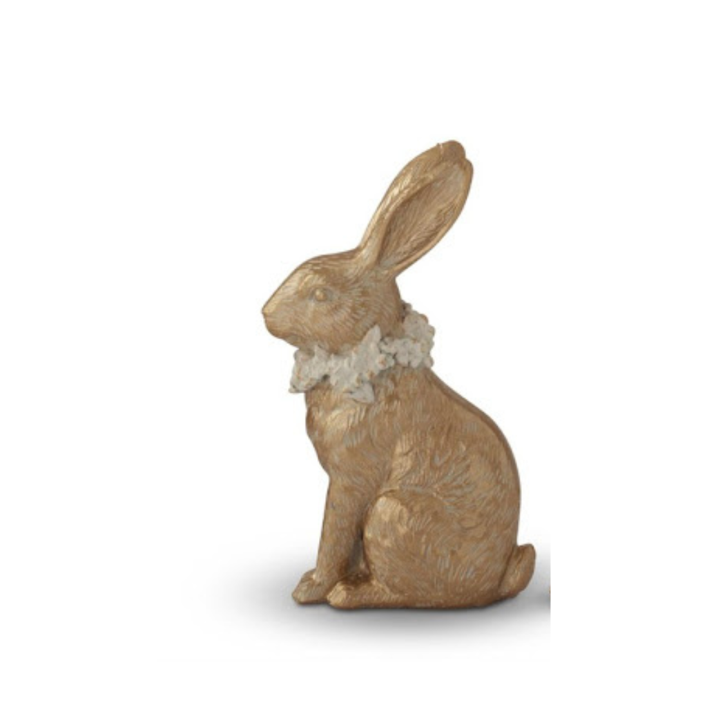 Select your perfect Easter companion with these charming resin bunnies finished in elegant gold. Choose between a sitting pose or a relaxed laying position—both feature delightful floral collars that blend whimsy with sophistication. Their cool, polished finish adds a touch of refined charm to any spring or Easter display. A versatile accent piece that brings personality and seasonal flair to your home décor.