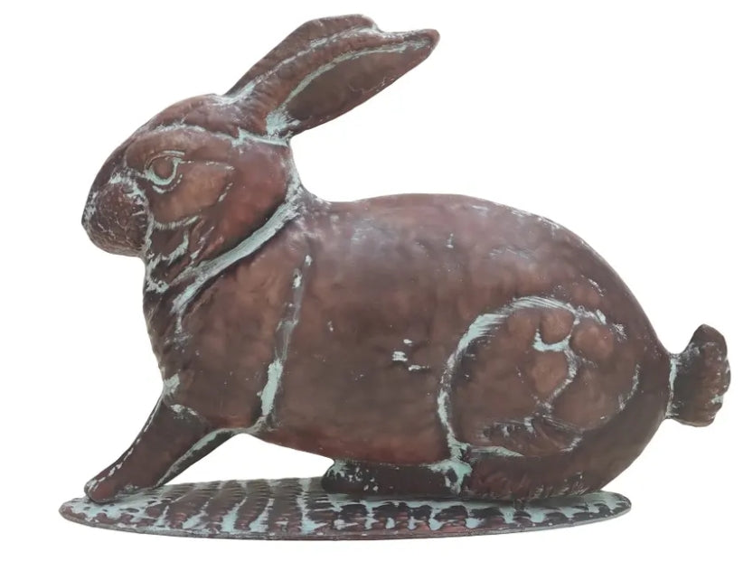 Add a touch of elegance and charm to your home with our Rabbit With Verdigris Finish. Made to resemble the top found on a large weathervane, its verdigris finish will make a stunning centerpiece for any table. Its stunning patina will captivate your senses and bring beauty to your Spring decor.