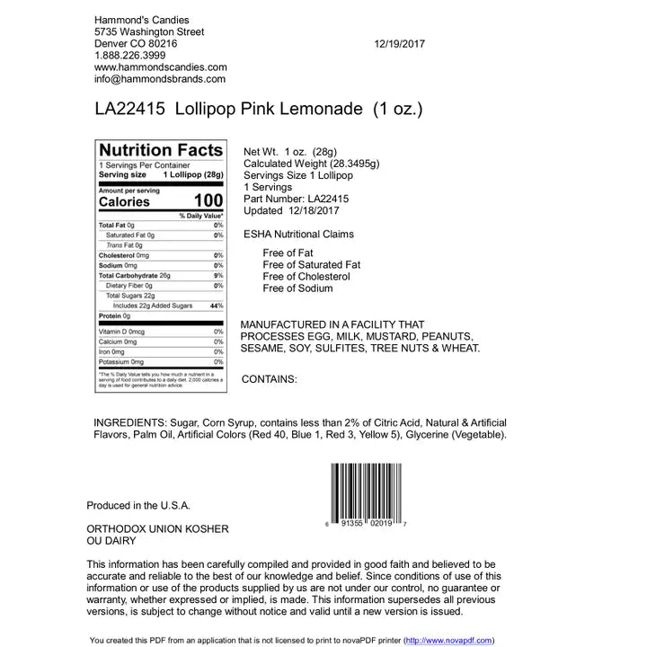 Ingredients: See Nutritional Information Image. Hammond's Candies are handmade with the finest locally sourced ingredients for superior quality flavor. We've been crafting America's best candy using the same original recipes for over 100 years.