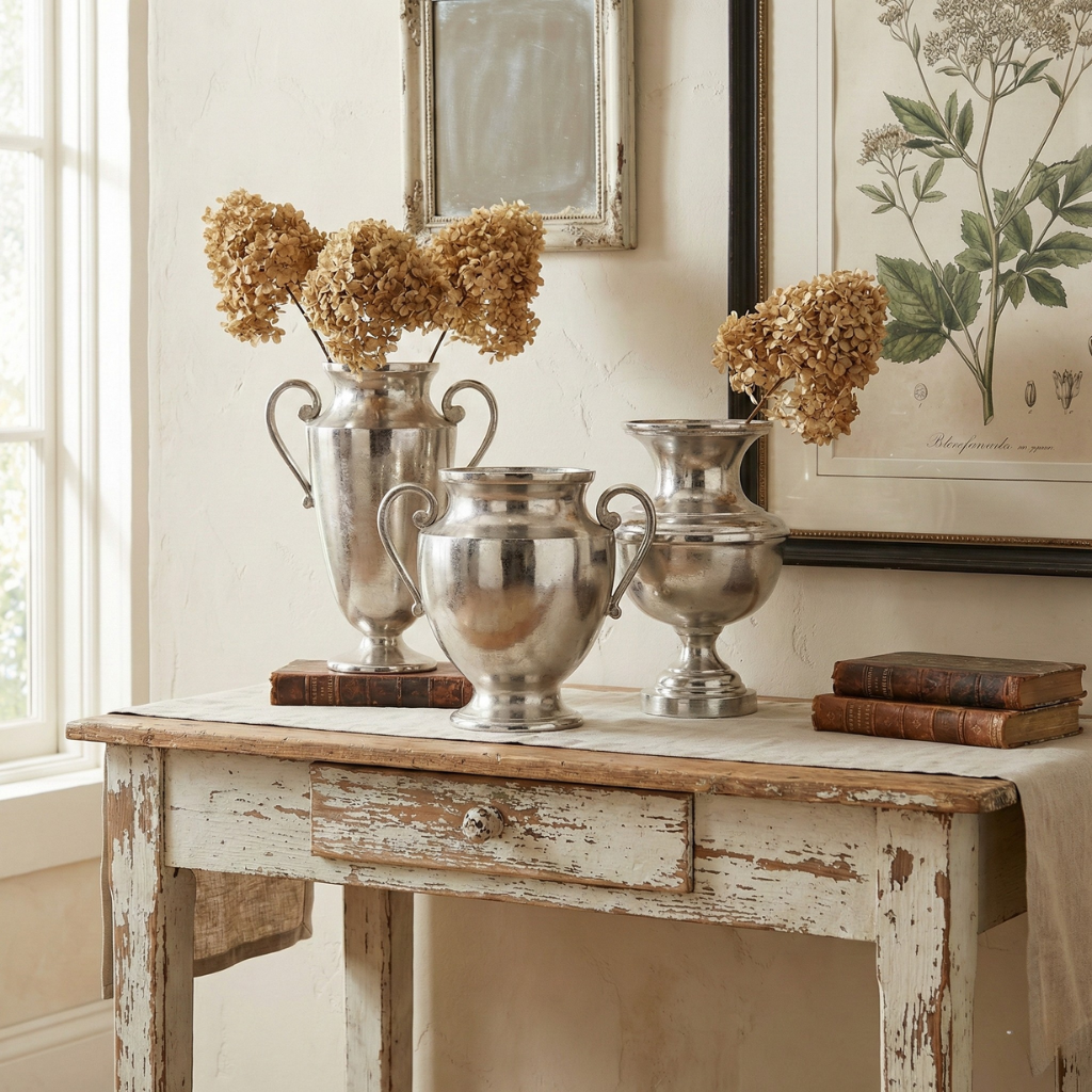 Make a bold statement with these stunning textured nickel urns. Choose from three distinct styles to showcase your personal aesthetic, or mix and match to create a layered, curated look. Each piece commands attention as a sophisticated accent that elevates any space. Whether displayed solo or styled together, these versatile urns bring contemporary elegance and visual interest to shelves, tables, and mantels.