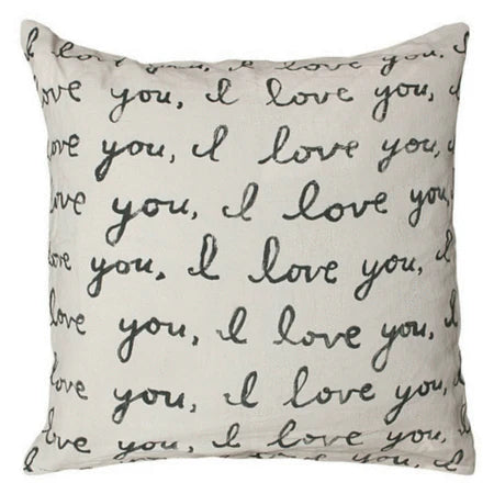 Adorned with "i love you" in graceful cursive script, this 24" x 24" pillow brings understated elegance to any space. Crafted from soft stonewashed linen in soothing neutral tones, it serves as a meaningful yet versatile accent piece that complements existing décor while expressing heartfelt sentiment. Includes a luxurious down feather insert for optimal comfort and shape retention.