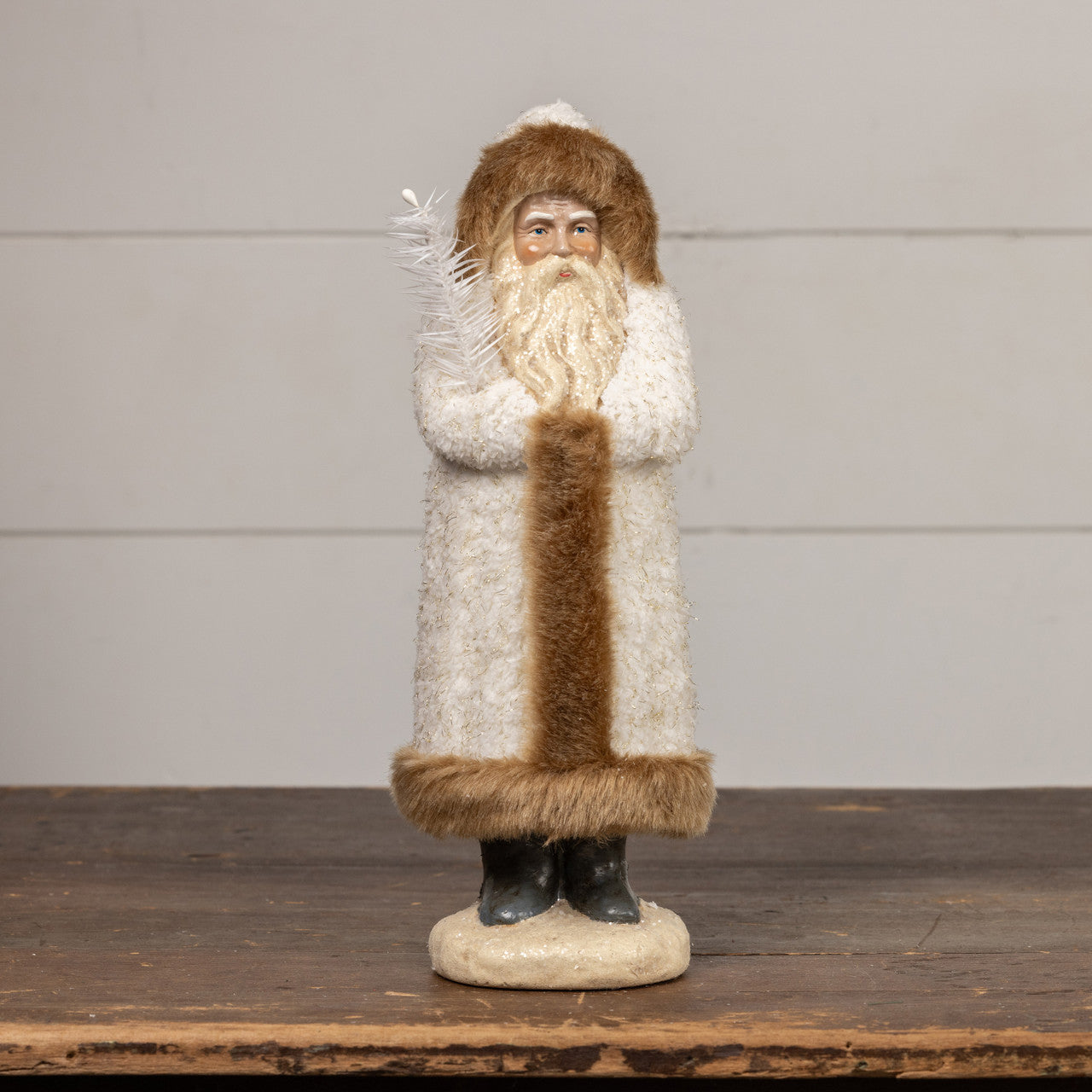 Bring a touch of vintage charm to your holiday décor with the Furry White Belsnickle Santa. Crafted to evoke the spirit of the early 1900s, this piece adds nostalgic warmth and festive elegance to any setting. Its rich fur texture and classic design make it a standout decoration that captures the magic of the season. Perfect for creating a cozy, timeless holiday atmosphere in your home.