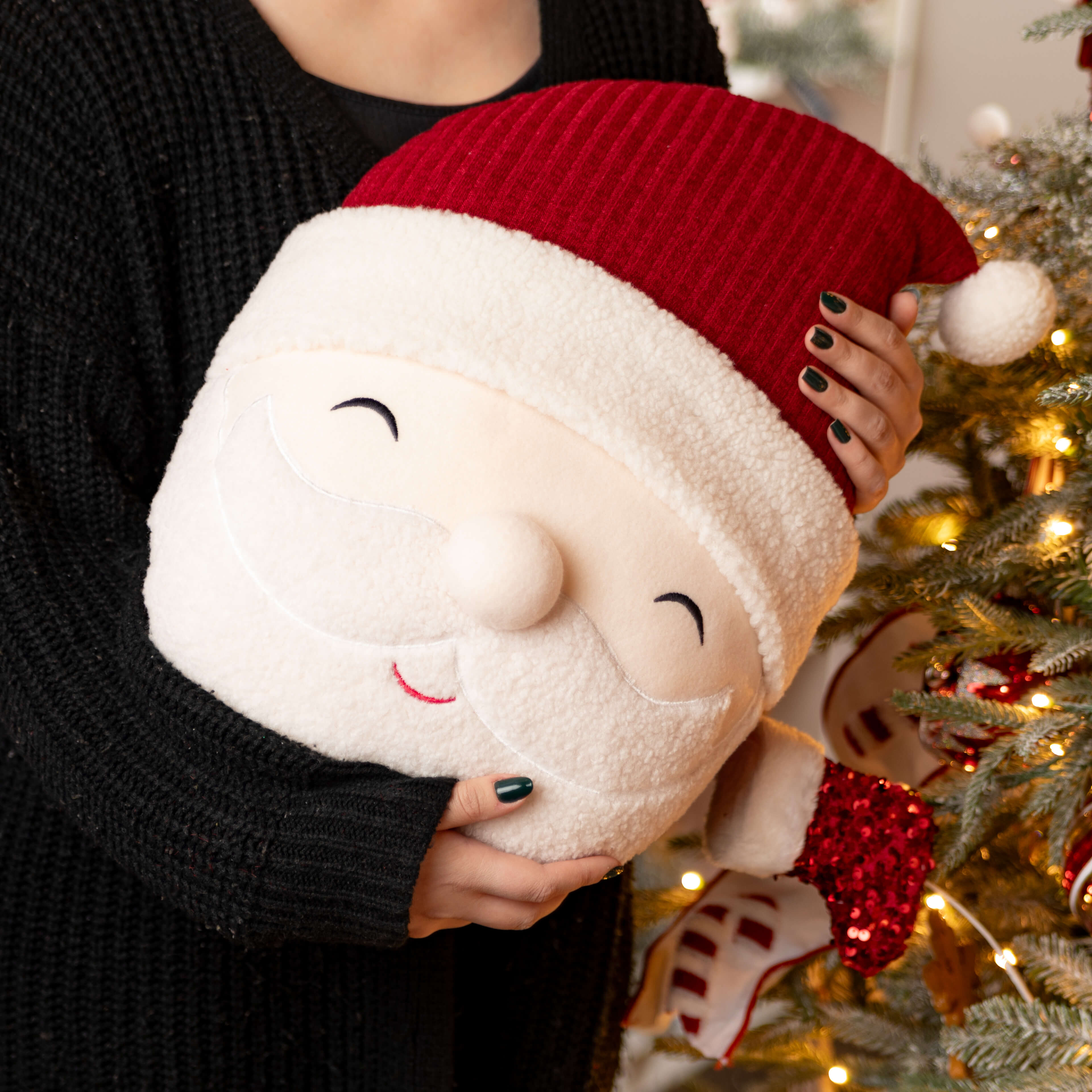 Spread some holiday cheer with our exclusive 18". The embroidered design features a jolly Santa face, bringing festive charm to your sofa, bed, or armchair. Crafted with a durable textile blend for comfort, this pillow will add whimsy and wonder to your living room.