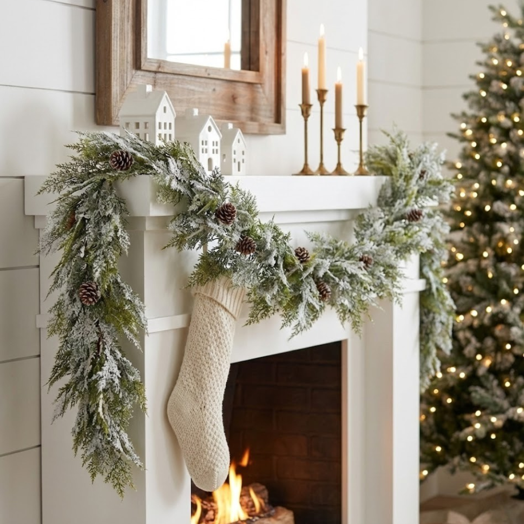 Bring the enchanting stillness of a snowy winter forest right into your living room. Our 6-foot Faux Snowy Pine Garland is designed to capture the cozy, rustic charm of the season without the mess of falling needles.