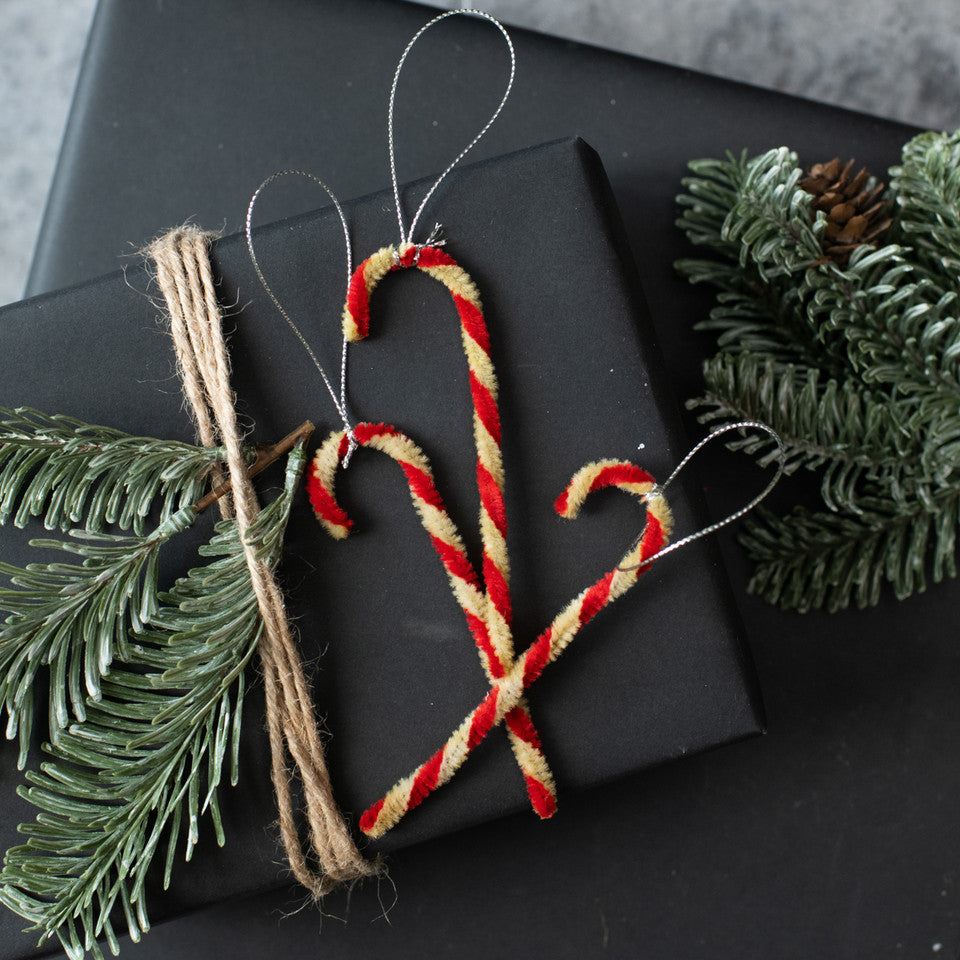 Set of 12 Vintage Style Chenille Candy Cane Ornaments