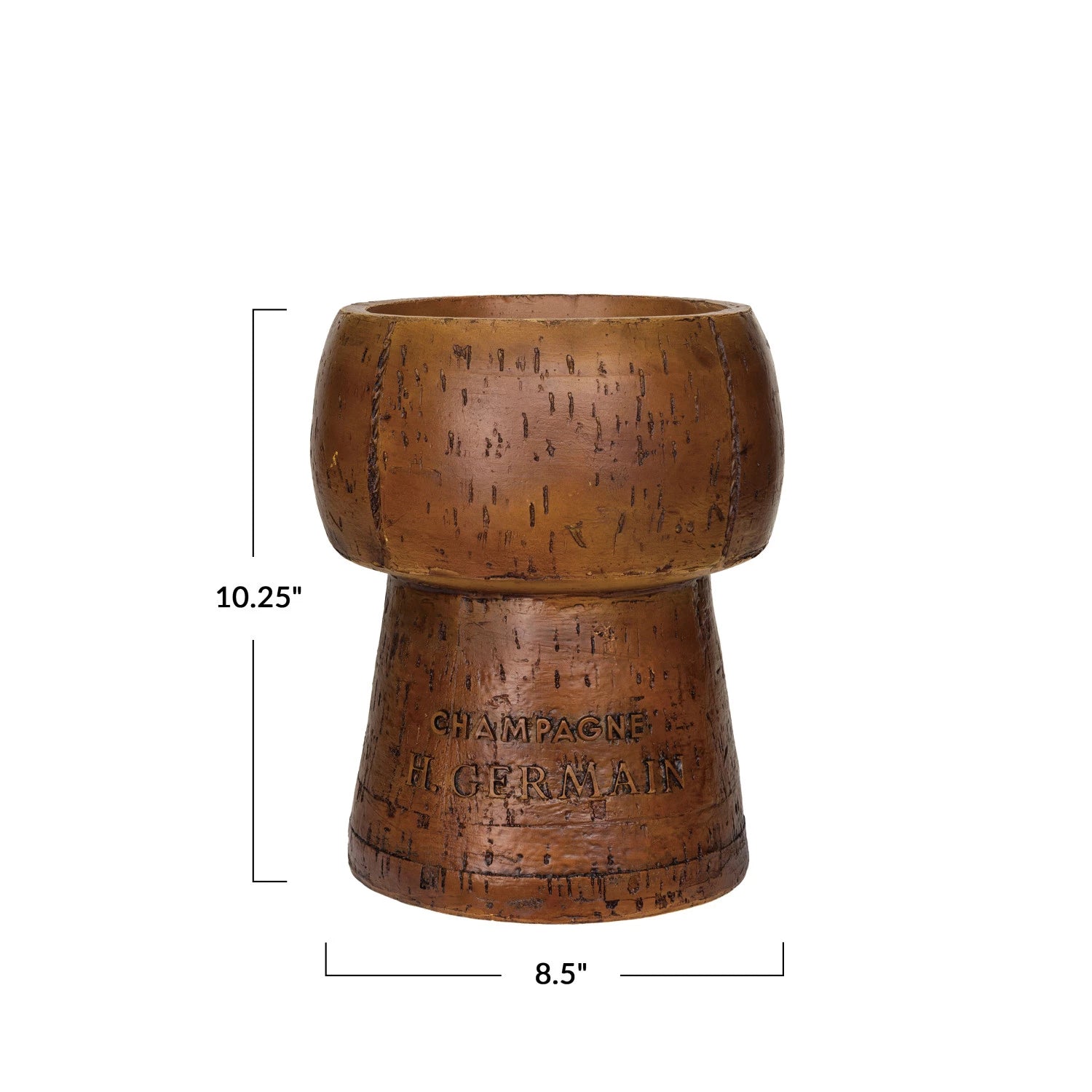 Copied from a vintage advertising piece, this resin cork shaped wine cooler not only adds a touch of charm to your home, but also keeps your wine chilled and ready to serve. Its unique design and natural color make it a stunning and practical piece for any kitchen, dining room, or bar. Use it as a decorative accent too!